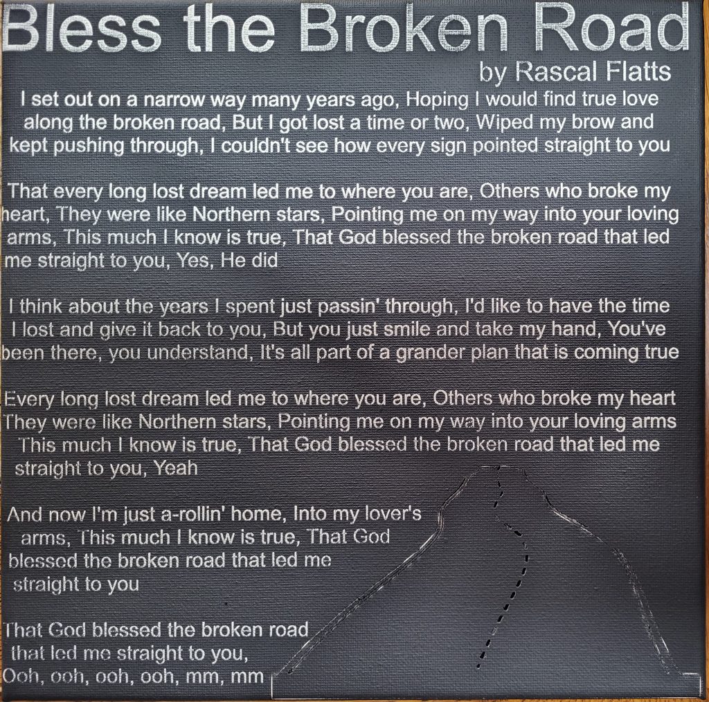Song lyrics on painted canvas – $15